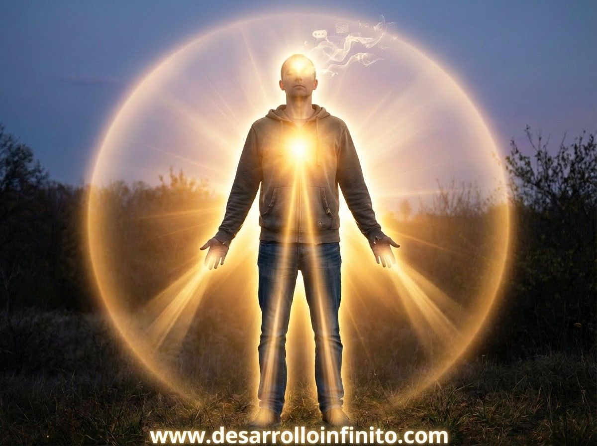 Iniciamos a brillar desde nuestra cabeza, difundiendo la luz por el abdomen —parte donde a veces la luz se siente menos—, las piernas, los pies, los brazos y las manos.
