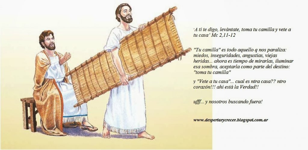 Esto me dijo ante mi confusión interior: ‘A ti te digo, levántate, toma tu camilla y vete a tu casa’ Mc 2,11-12