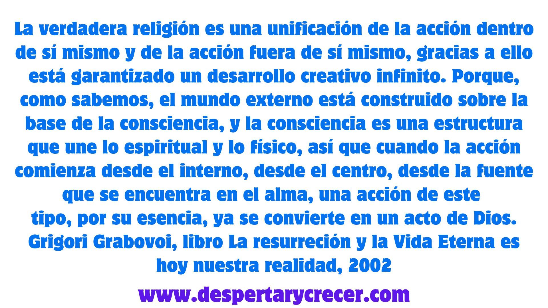 Sólo viviendo con el verdadero conocimiento en cualquier momento se puede sentir el sabor de la vida, sólo en este caso se puede sentir la autenticidad de la vida, sólo en este caso se produce la apertura del hombre a la verdadera vida, la vida real! Una de las características más importantes de mi religión es su dirección práctica, su orientación para conseguir un resultado concreto, a saber, garantizar un desarrollo creativo del alma, del cuerpo y de la sociedad. Por consiguiente, un seguidor de mi religión es a la vez una persona práctica que construye su vida y ayuda a otros a construir sus vidas sobre la base de un principio creador, es decir, el principio que refleje las verdaderas leyes del mundo. De esta manera, con su trabajo refleja de manera más completa y realiza totalmente el plan del Creador. Para ello es importante la interacción entre personas y grupos de personas, para un intercambio continuo de tecnologías de desarrollo creativo.