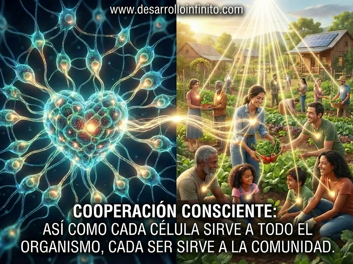 Continuar relacionándonos desde la competencia y con el planeta desde la explotación, nos llevaría a la destrucción. El desafío es la cooperación consciente: así como cada célula sirve a todo el organismo, cada ser sirve a la comunidad.
