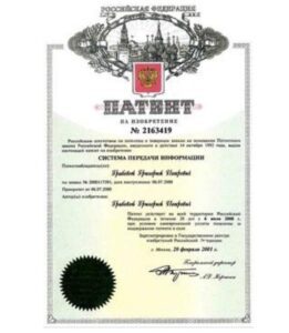 20 de febrero de 2001 Grabovoi G. P. registrado the patent of the invention N°. 2163419 “Mode of transmitting of the information”. La invención se refiere al campo de la tecnología de la comunicación y puede utilizarse en sistemas de transmisión de la información, en el que se utiliza la comunicación inalámbrica entre el transmisor y el receptor de la información, principalmente por la transmisión de la información sobre distancias considerables y en los sistemas de prevención de procesos catastróficos de diferente origen.