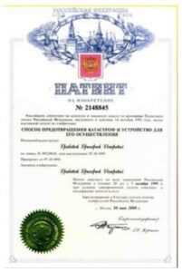 10 de mayo de 2000 S. P. Grabovoi registrados the patent on the invention N°. 2148845 “The way of prevention of catastrophes and device for it implementation”. La descripción de la patente se da en Internet en el sitio oficial de la Agencia Federalde Rusia sobre la propiedad intelectual, patentes y marcas www1.fips.ru.