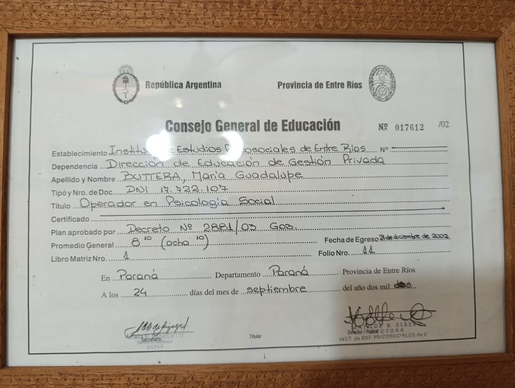 Fui formada como Técnica en Procesos de Comunicación y Trabajo Grupal, luego me recibí como Op. en Psicología Social*; más adelante de Counselor*, y me especialicé en Desarrollo y Crecimiento Personal, a través de la observación consciente de las emociones en nuestros vínculos cotidianos. Todo ayudó a des-armar el rollo que nos ata a la ilusión del ego, para recordar la verdad de nuestra identidad: el Ser unido eternamente al Creador. Desde el 2017 estudio y me desempeño también como docente de las Enseñanzas de Grigori Grabovoi, donde encuentro la unidad de la ciencia y la espiritualidad que tanto busqué.