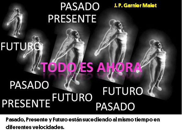“Vi el pasado, el presente y el futuro al mismo tiempo”. Nikola Tesla Pasado, Presente y Futuro están sucediendo al mismo tiempo en diferentes velocidades. Todos los tiempos están conectados Jean Pierre Garnier Malet con su teoría del Desdoblamiento del tiempo, nos muestra cómo en el momento PRESENTE podemos crear nuestro mejor FUTURO, pues pasado,